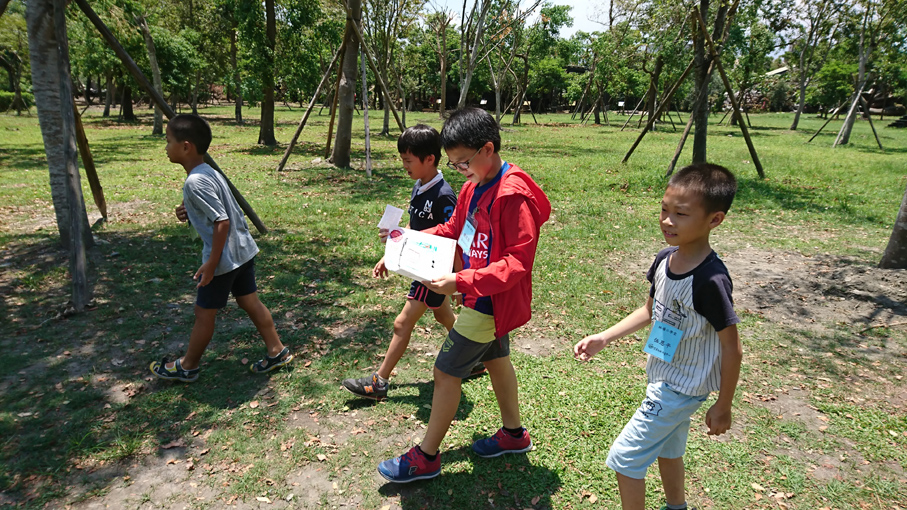 低年級的小朋友玩著植物大富翁,從大富翁的各項任務,在園區森林中東奔西跑,一步一步學習如何正確和樹木接觸的方法,感受最原始的五種感官知覺,建立起和森林的美好初體驗;高年級的孩子們把玩著細碎的樹葉破片,觀察葉脈和葉片邊緣的蛛絲馬跡,拼湊出原本的森林綠葉,還大膽地將小手伸入暗箱中,細細感觸未經視覺干擾的觸覺觀察。