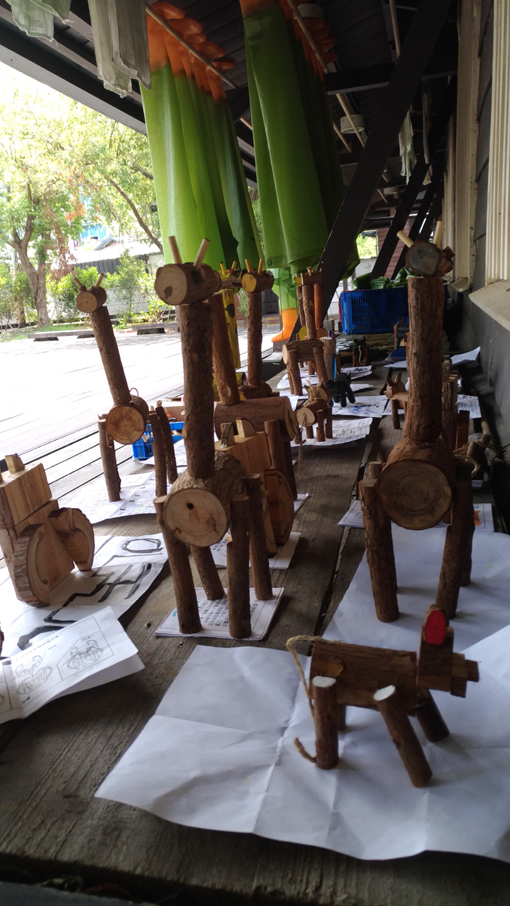 這次我們利用人工林中疏伐或者修枝所修剪下柳杉枝條小徑木,加上簡單的榫接原理,組合成小狗、貓頭鷹和長頸鹿的動物玩具。希望這是一個讓他們會細細保護的手工質感玩具。而這樣的玩具,同時也保留了二氧化碳在木頭上,你說這是不是一個很棒的固碳玩具啊!